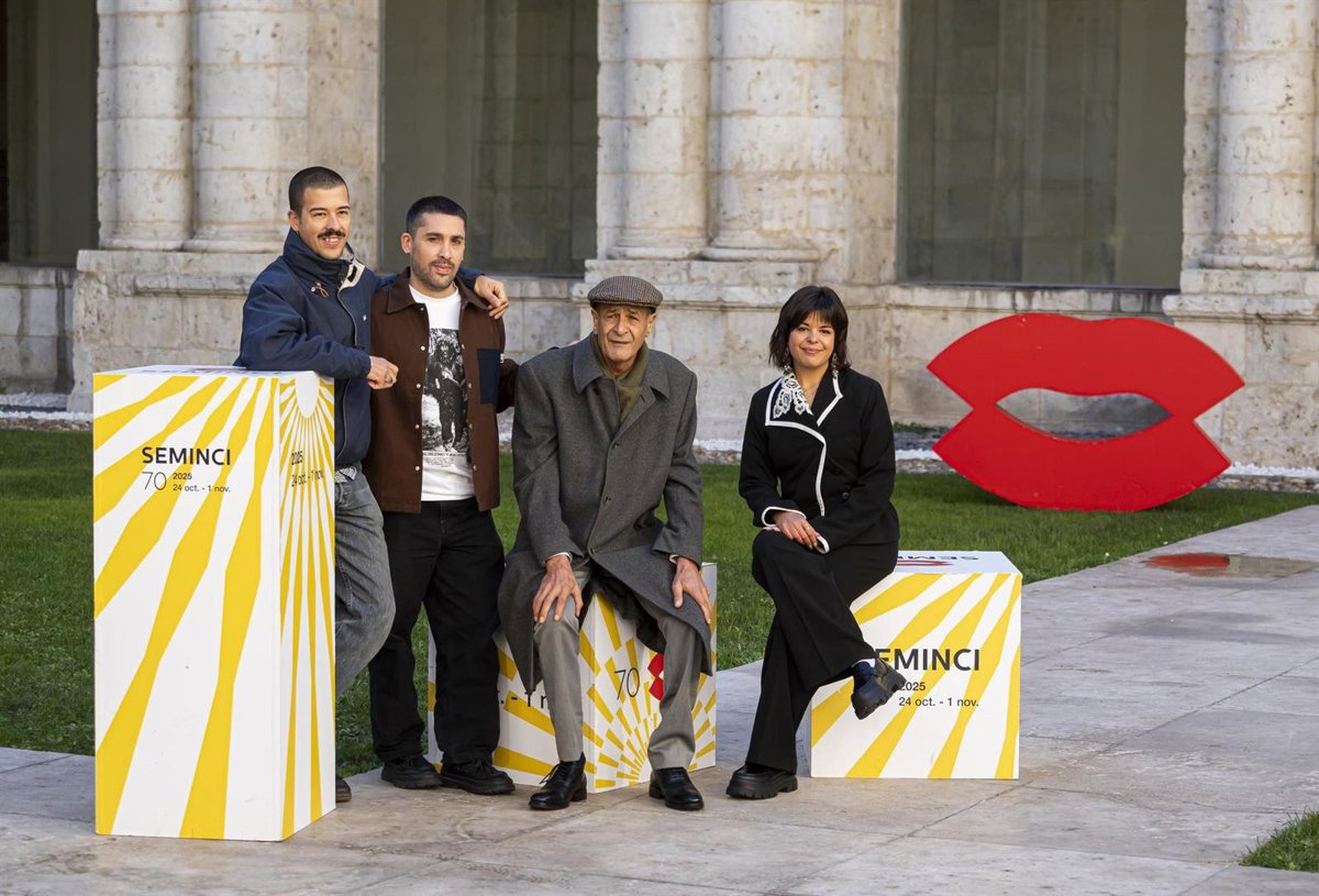 Lionel Corral, Lionel Corral Bernal y Alicia Corral con el director Carlos Saiz en la Foto del Día de Seminci, donde presentan 'Lionel'. - SEMINCI