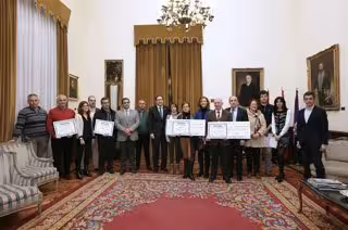 El presidente de la Diputación y del Consorcio Provincial de Residuos, José María Hernández, y el alcalde de la ciudad y vicepresidente, Alfonso Polanco, junto a representantes de Ecoembes, Isabel Tennenbaum y Clara Fernández, y del propio Consorcio Provincial y de la empresa adjudicataria del servicio de recogida, Contenedores Castro, han entregado este martes los citados premios.