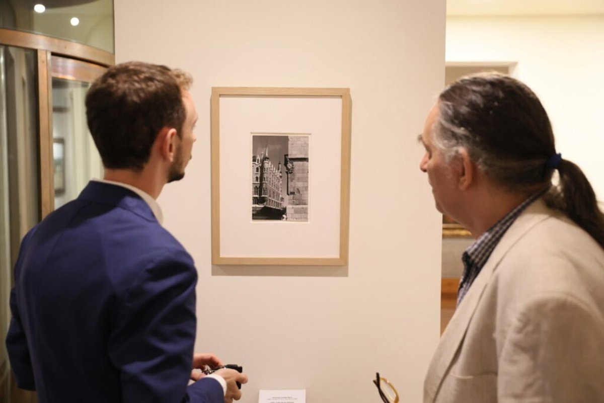 Andreu Català. Hijo de Catalá-Roca y Carlos Varela, conservador jefe del Museo Casa Botines Gaudí, en la inauguración del montaje. - MUSEO CASA BOTINES