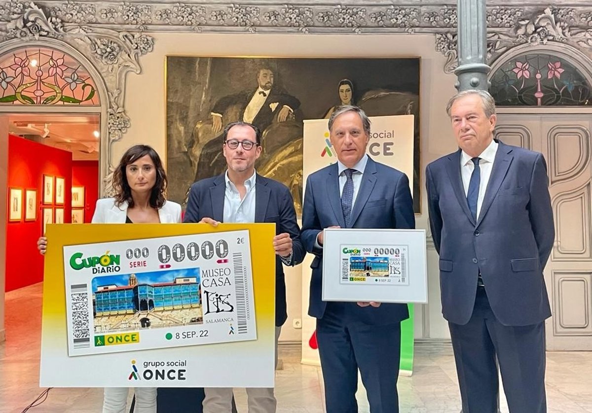 La presentación del cupón ha tenido lugar este lunes en la Casa Lis con la participación del delegado territorial de la ONCE en Castilla y León, Ismael Pérez; la directora de la ONCE en Salamanca, Esther Pérez; al lcalde de Salamanca y presidente del Patronato de la Fundación Manuel Ramos Andrade, Carlos García Carbayo; y el director del Museo Casa Lis, Pedro Pérez.