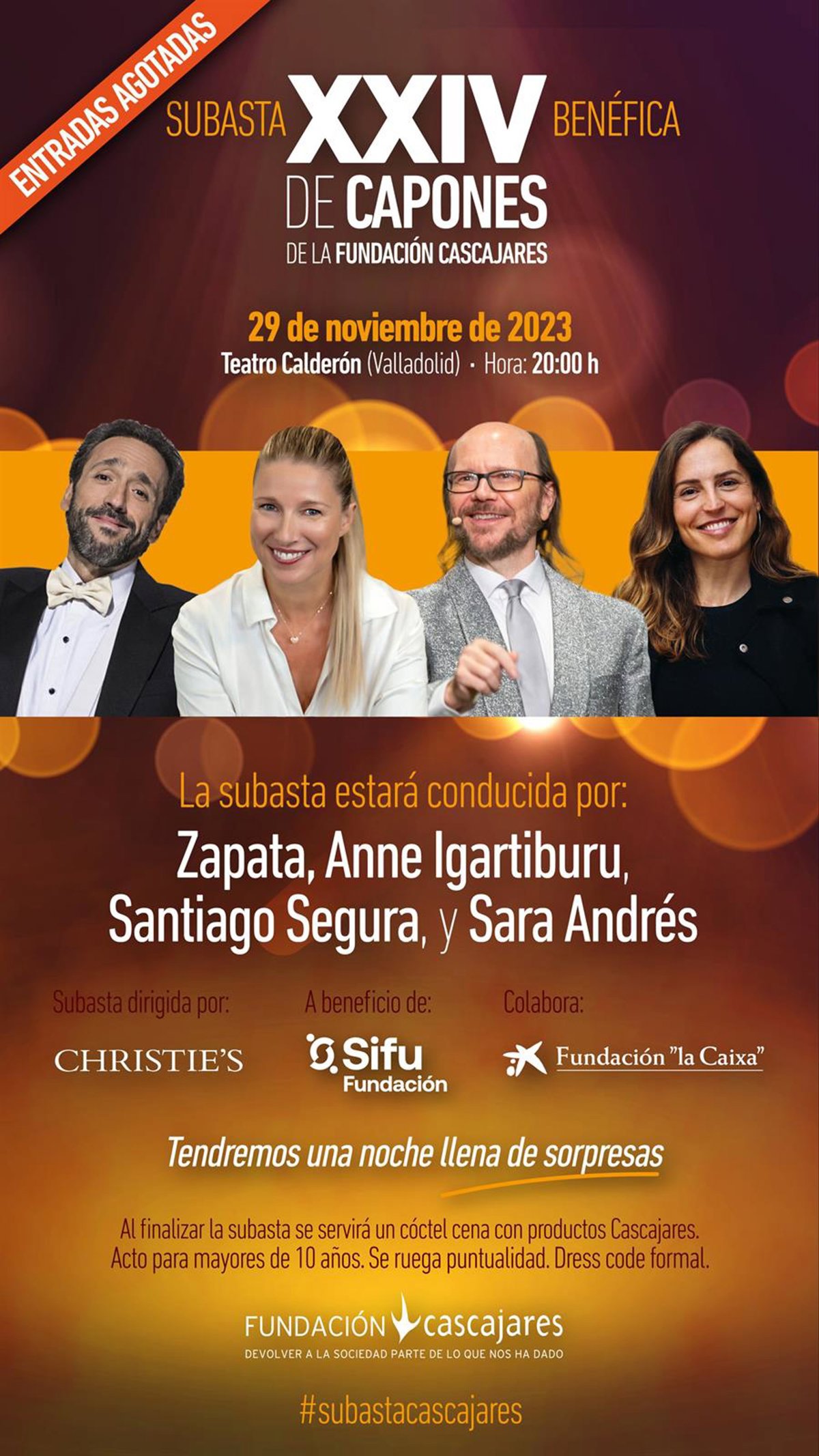 La Fundación Cascajares celebrará el próximo miércoles, 29 de noviembre, su XXIV edición de la Subasta benéfica de Capones de Cascajares, cuyos beneficios se destinarán íntegramente a la Fundación SIFU y que este año tendrá lugar en el teatro Calderón de Valladolid.