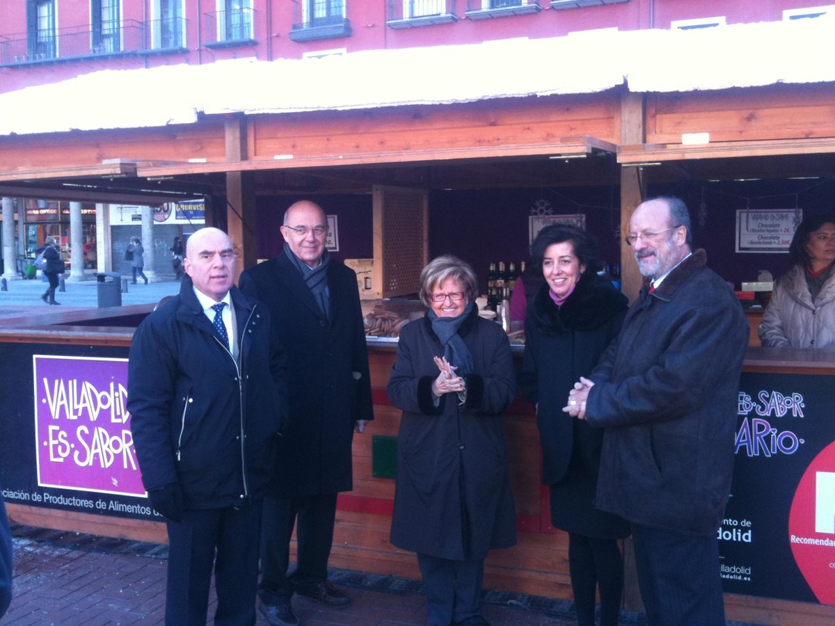 Una caseta de 'Valladolid es Sabor', instalada por el Ayuntamiento de Valladolid en la Plaza Mayor, recoge desde este viernes productos no perecederos que se destinarán al Banco de Alimentos para que, como explicó el alcalde, Francisco Javier León de la Riva, las familias que se encuentran "en situación desesperada" puedan "disfrutar algo" de la Navidad.