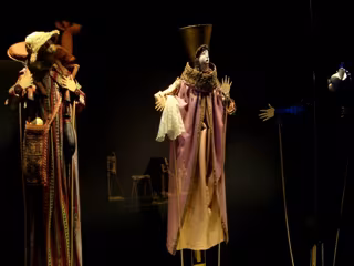 Junto con los personajes 'La Condesita', el 'Conde Flores' o los protagonistas del cuento 'La Noche', se ha reservado un espacio para los títeres construidos por alumnos del centro Andrés Laguna como reconocimiento a la importancia que el artista ha concedido siempre a la formación juvenil.