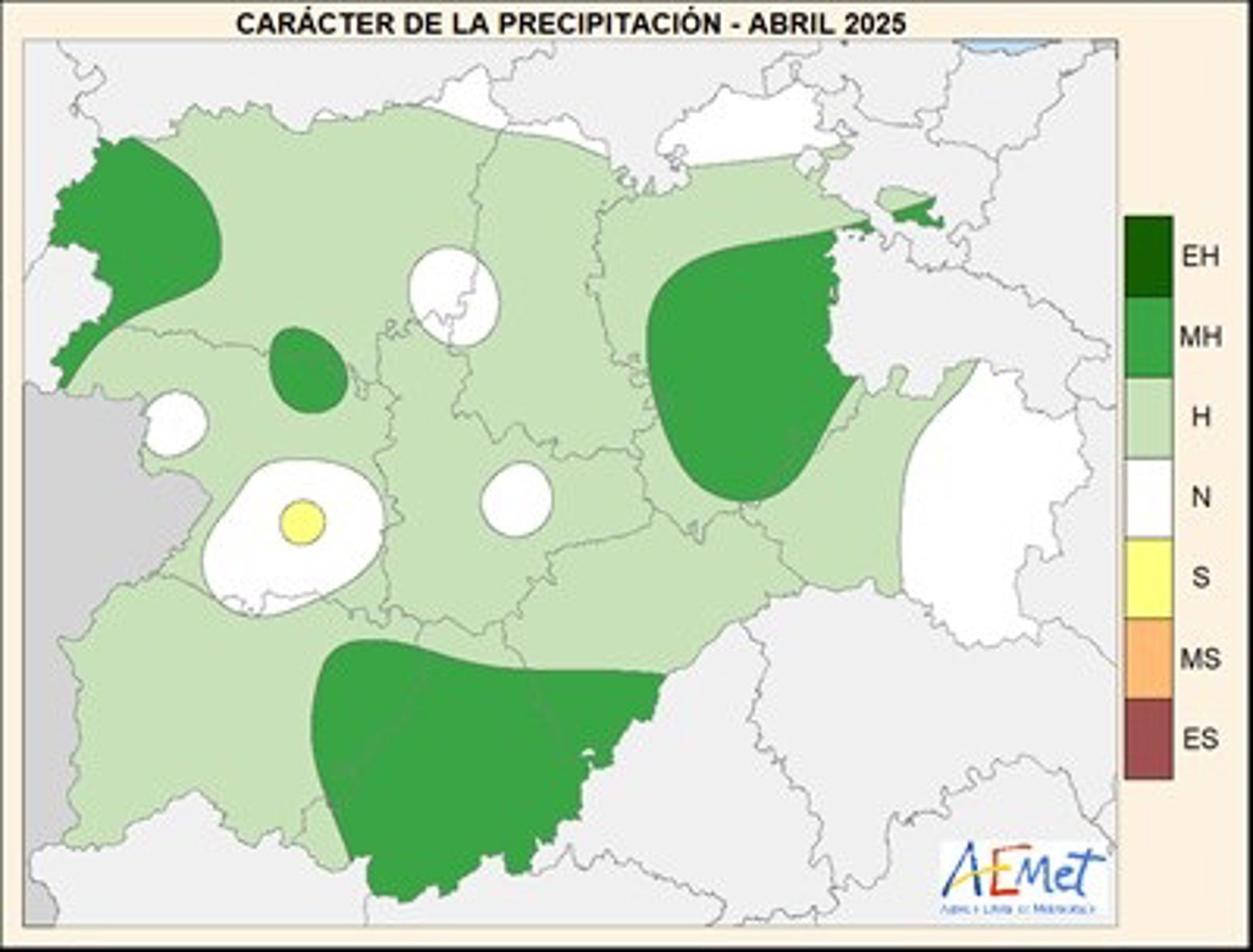 Mapa elaborado por la Aemet sobre el balance de precipitaciones de abril en CyL - @AEMET_CYL