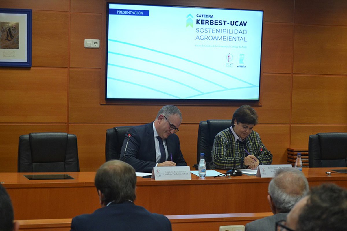 La Universidad Católica de Ávila (UCAV) y la Fundación Kerbest han presentado la Cátedra Kerbest-UCAV de Sotenibilidad Agroambienta, proyecto conjunto que tiene como objetivo contribuir a impulsar y crear proyectos de investigación en sostenibilidad, economía circular y ganadería medioambientalmente sostenible.