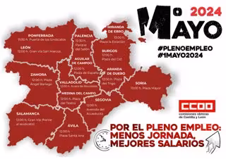 CCOO y UGT saldrán este 1º de mayo en 14 localidades de Castilla y León y han animado a la ciudadanía a que se sumen a las manifestaciones para demandar la mejora de los derechos laborales de las personas trabajadoras y la defensa de la Democracia y la Libertad en España.