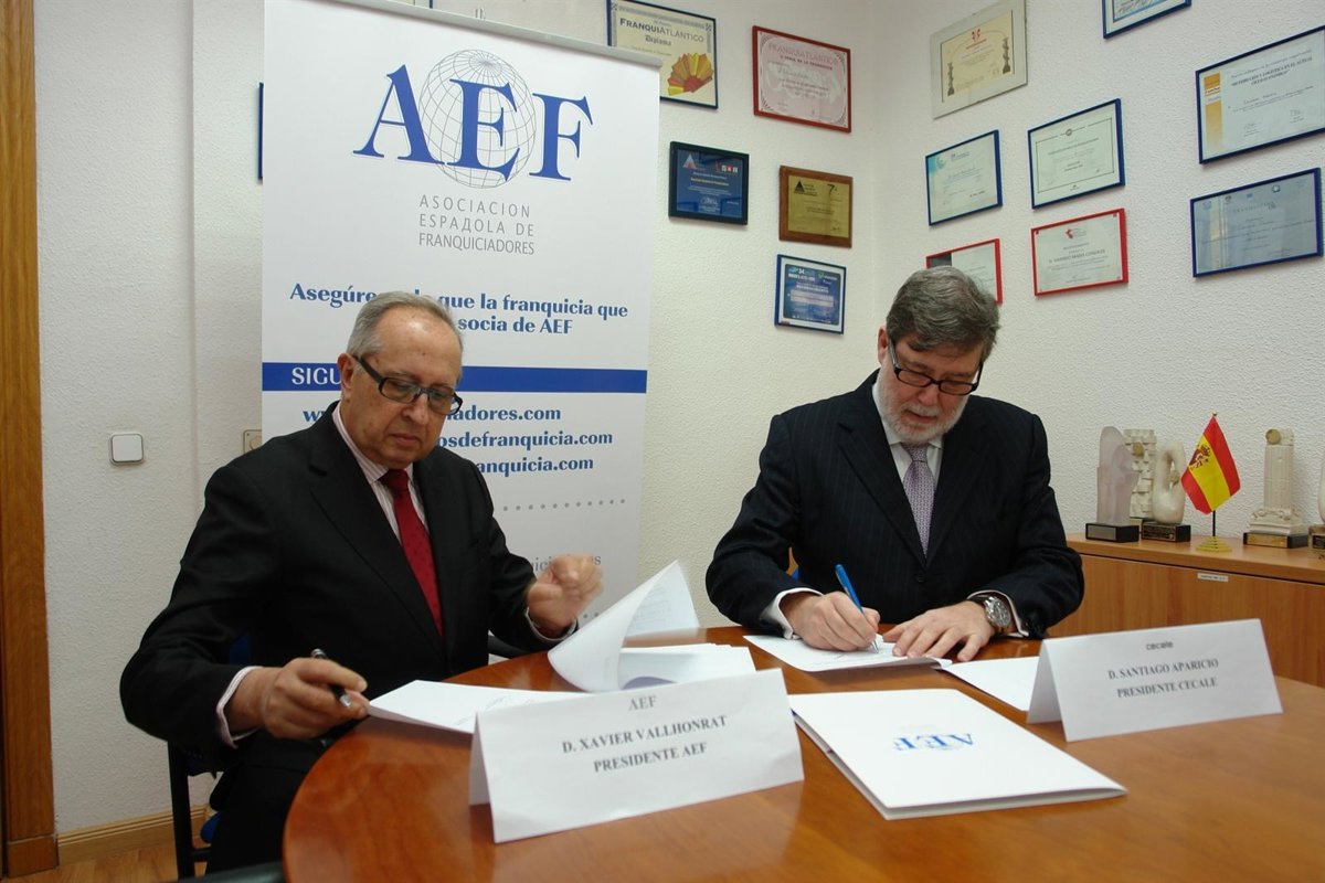La Asociación Española de Franquiciadores (AEF) y la Confederación de Organizaciones Empresariales de Castilla y León (Cecale) han suscrito un acuerdo para trabajar conjuntamente en potenciar este modelo de negocio entre los empresarios, emprendedores y colectivos que presentan elevadas tasas de desempleo, como los jóvenes y los mayores de 45 años, en esta Comunidad Autónoma.