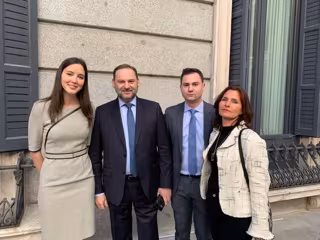 Los diputados leoneses del PSOE Andrea Fernández y Javier Cendón junto al ministro de Fomento en funciones, José Luis Ábalos. - PSOE DE LEÓN.