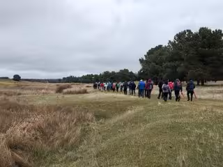 La expedición ha partido a las nueve de la mañana de la Plaza de Toros de Segovia con dirección a Puebla de Pedraza, donde ha dado comienzo el primer tramo de la ruta, de 6,8 kilómetros. Una vez allí se ha salido del casco urbano para tomar un camino que ha desembocado en la carretera que se dirige a Valdesimonte.