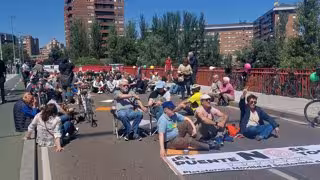 Un centenar de personas realizan una 'sentada' en el Puente de Poniente de Valladolid. - EUROPA PRESS