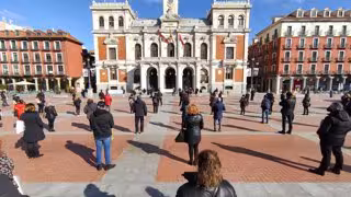 En Valladolid, más de un centenar de personas --colocadas guardando la distancia de seguridad-- se han dado cita en la Plaza Mayor, donde han mostrado pancartas en la que se reclama la bajada del IVA y han portado carteles amarillos con la misma reivindicación frente al Ayuntamiento de la ciudad, donde han recibido el apoyo de los grupos municipales de PP y Ciudadanos, además de haberles llegado el de Toma la Palabra.