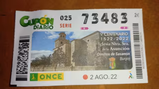 El cupón diario de la ONCE pone en juego un premio de 500.000 euros al número más la serie y 49 premios de 35.000 euros a las cinco últimas cifras del número agraciado en el sorteo.