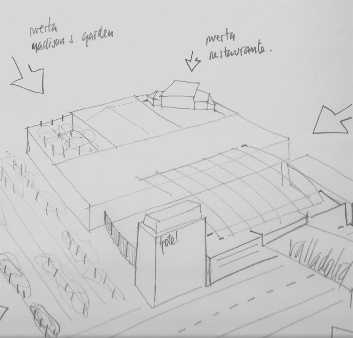 Habrá, sobre la entrada actual un edificio institucional, que será "representativo de la nueva fisionomía de la Feria de Valladolid, la fachada a la ciudad", donde irán las oficinas, un centro de negocios y un restaurante.