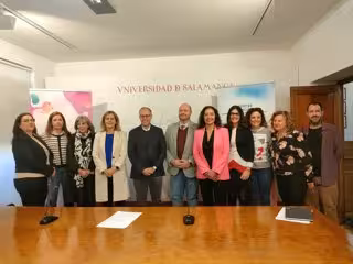 Integrantes del Centro en Derechos Humanos y Políticas Públicas de la USAL junto al vicerrector, José Miguel Mateos Roco, quinto por la izquierda, en Salamanca - EUROPA PRESS