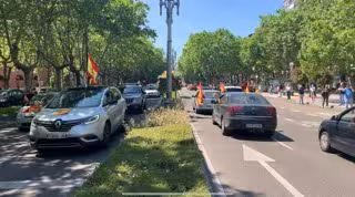 Algunos han añadido a sus coches proclamas como 'Sánchez Dimisión' o 'Basta de Bandazos', en una comitiva que ha transcurrido sin apenas incidentes, salvo algún joven que ha increpado a varios de los participantes en el paseo de Zorrilla, a la altura de la Plaza de Toros.