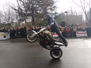 Tras las acrobacias, buena parte de la comitiva se ha desplazado hasta el pabellón Ángel Nieto de la capital zamorana para ofrecer un homenaje al histórico '12+1', fallecido en 2017 en Ibiza en un accidente de tráfico.