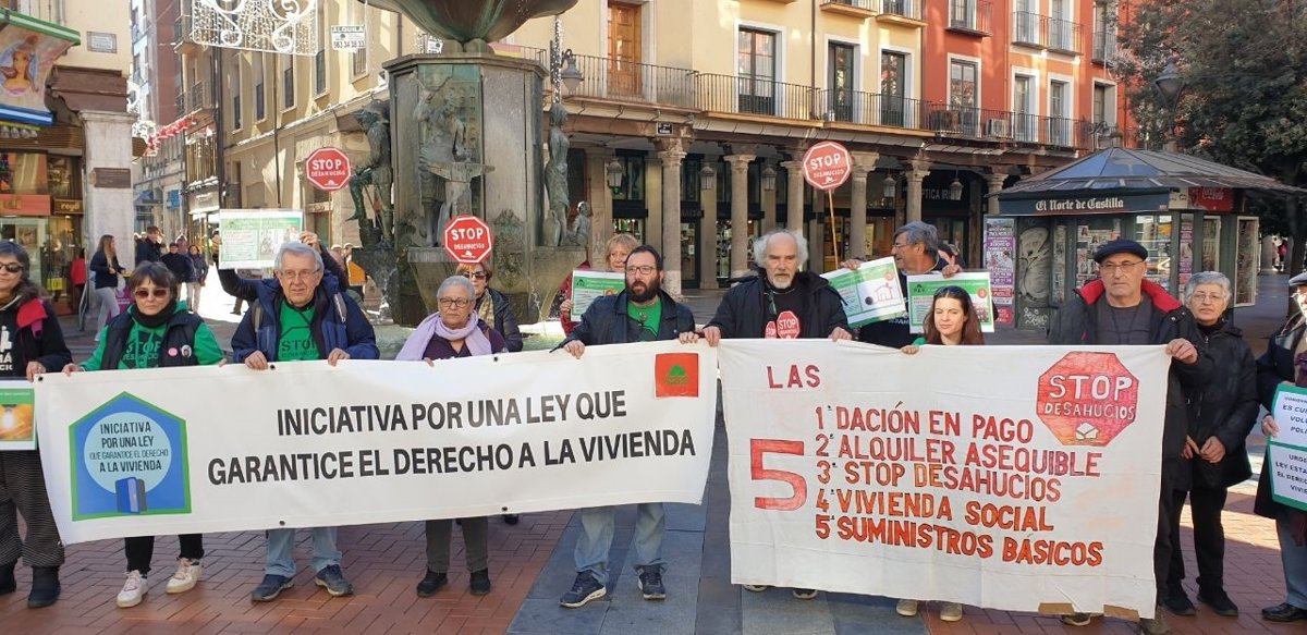 El portavoz de las plataformas Stop Desahucios Castilla y León y Afectados por las hipotecas, Pepe Lobato, ha indicado a Europa Press que se han concentrado este sábado en la capital vallisoletana debido a que los colectivos llevan años exigiendo que se lleve al Parlamento la Ley de Vivienda y "cada vez se va retrasando más".
