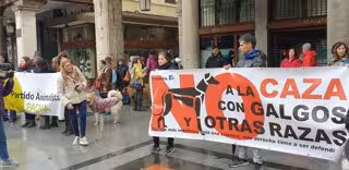 Cerca de 50 personas se han concentrado este domingo en la plaza de la Fuente Dorada de Valladolid para reivindicar que los perros de caza tengan los mismos derechos que los de compañía y no se les excluya del cobijo jurídico de la Ley de Bienestar Animal.