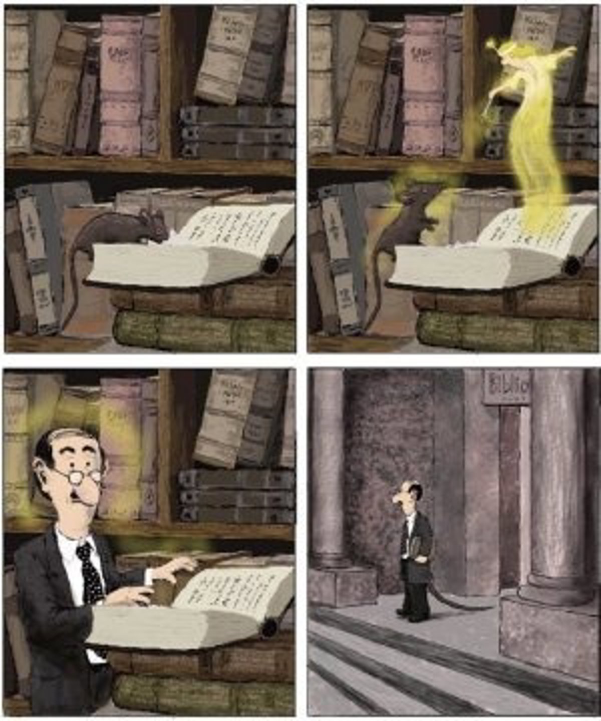La obra se complementa con material bibliográfico para ser expuesto en vitrinas en el que se puede observan algunos ejemplos de libros de enseñanza del español que incluyen humor gráfico en sus contenidos, de forma que el visitante puede ver qué, cómo y para qué se ha utilizado.