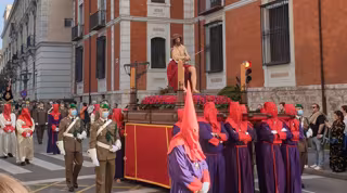 Casi un millar de personas ha acudido a salida del 'Cristo de la Misión' del Palacio Real de Valladolid, un paso portado a hombros por la Hermandad del Santo Cristo de los Artilleros.