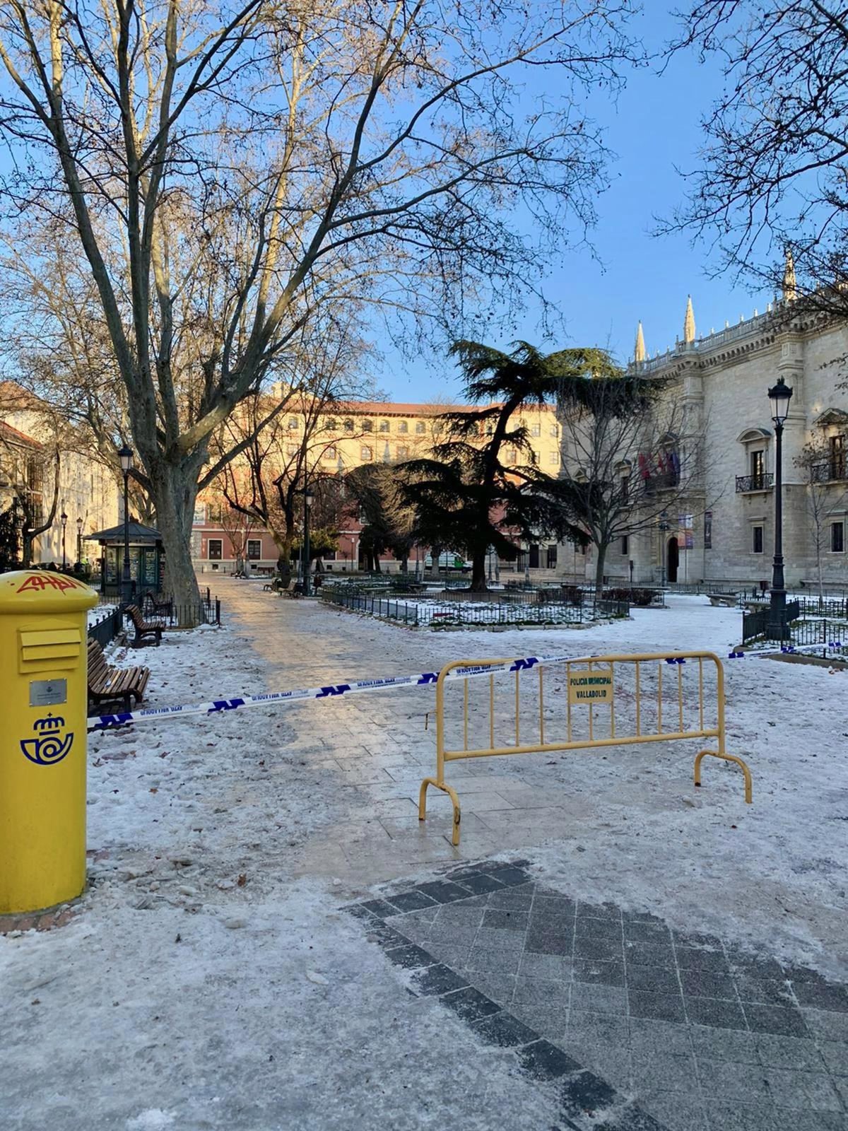 Placas de hielo en la plaza de Santa Cruz. - POLICÍA MUNICIPAL DE VALLADOLID
