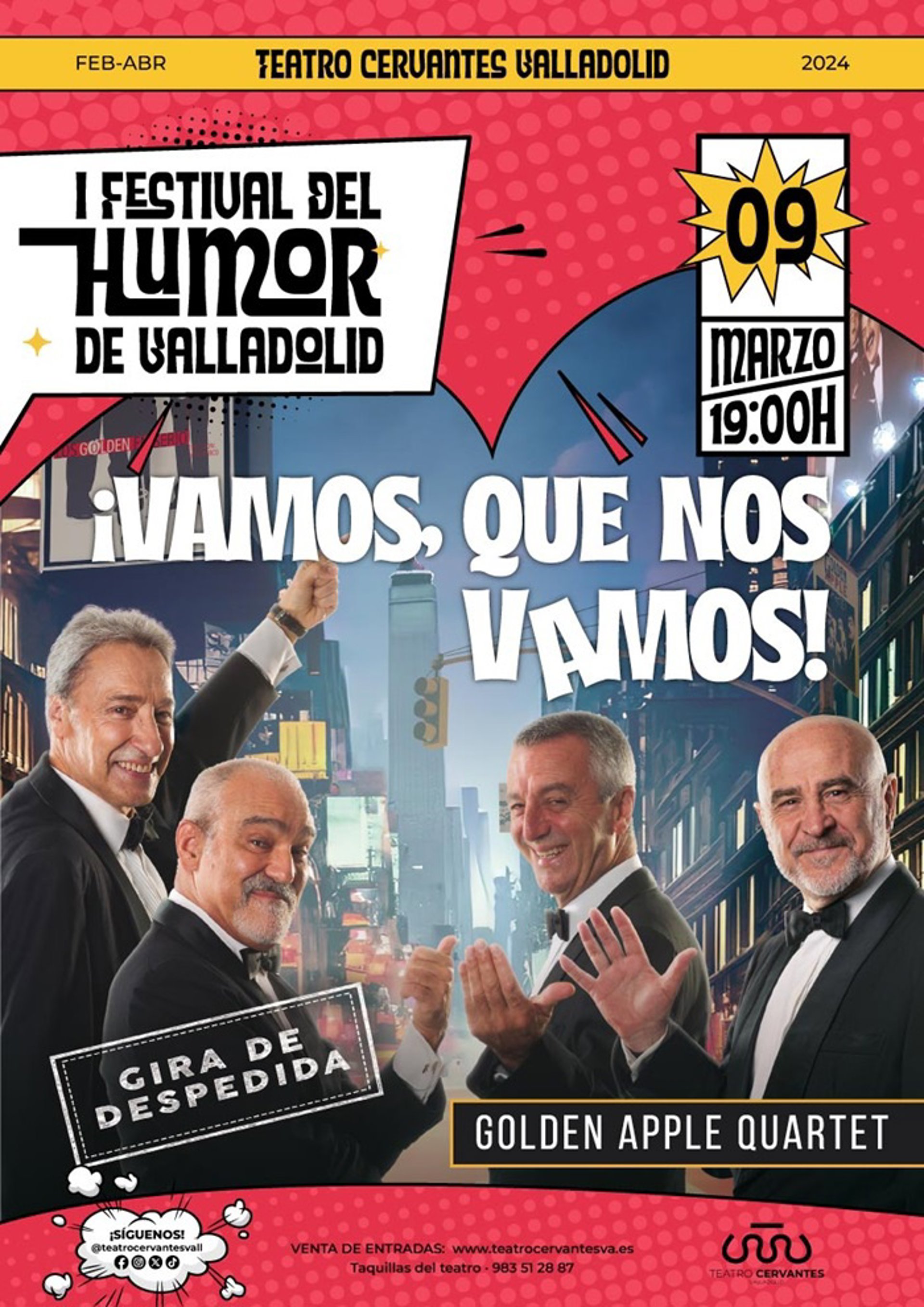 El Teatro Cervantes de Valladolid acoge el 9 de marzo el espectáculo 'Vamos que nos vamos', un recorrido musical por las canciones del grupo Golden Apple Quartet, que se encuentra realizando su gira de despedida.
