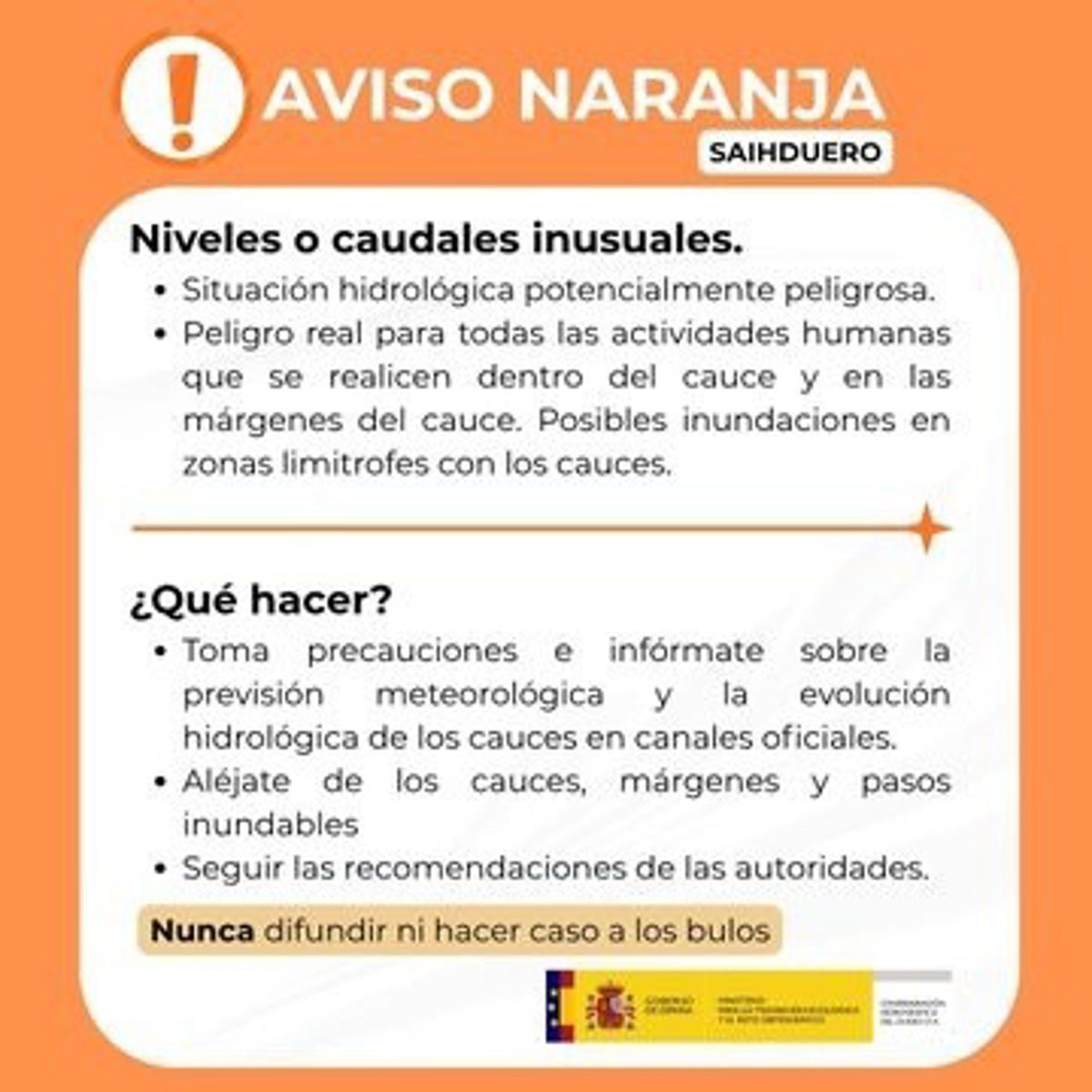 Gráfico difundido por la CHD sobre un aviso de nivel naranja - CHD