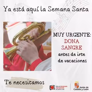 "Por toda Castilla y León se escucha la Semana Santa. En estos días la afluencia de donantes se ve reducida, mientras que la demanda por parte de los hospitales se mantiene constante. Los enfermos no se van de vacaciones. DONA SANGRE. ¡Gracias!", pide en concreto el Centro de Hemoterapia y Hemodonación.