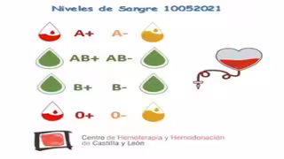 Además, según la información del Centro de la que se hace eco el Servicio de Emergencias de Castilla y León 112 en su cuenta de Twitter en la que anima a donar, se encuentra en nivel naranja la reserva de los grupos sanguíneos A- y 0-, por lo que también se necesitan donaciones del mismo.