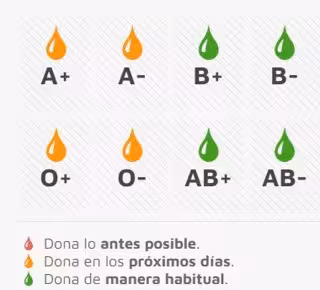 Actualmente, según la información del Centro, no es necesario donar "lo antes posible" de grupo alguno, ya que ninguno se encuentra en rojo en el 'semáforo' que utiliza para informar sobre la situación actual, pero sí se necesita en los "próximos días" --están en color naranja-- de A+, A-, 0+ y 0-.