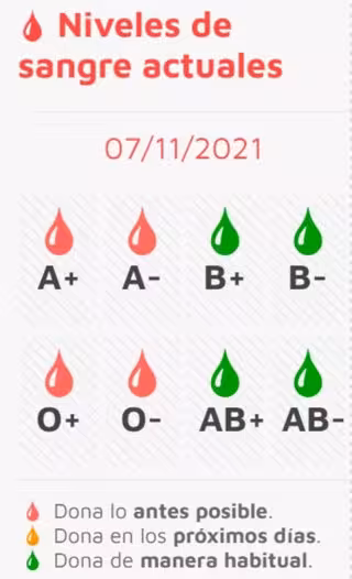 De acuerdo con la información facilitada en la web del Chemcyl, las reservas del grupo A+ A- 0+ y 0- están en nivel rojo mientras que las de los grupos B+, B-, AB- y AB+ presentan nivel verde, por lo que se recomienda donar "de manera habitual".