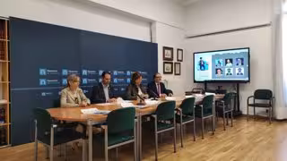 La presidenta de la Diputación de Palencia, Ángeles Armisén, junto al alcalde de Palencia, Mario Simón, y el presidente de la Asociación Palentina de Empresarios de Tecnologías de la Información y Comunicación (APETIC), Julio César Miguel, han presentado la jornada que este año tiene como título 'Gestionar la Ciberseguridad, ¡Supera el reto!'.
