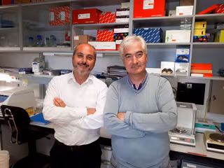 Archivo - Los investigadores Alberto Ocaña (i) y Atanasio Pandiella (d) en un laboratorio - USAL - Archivo