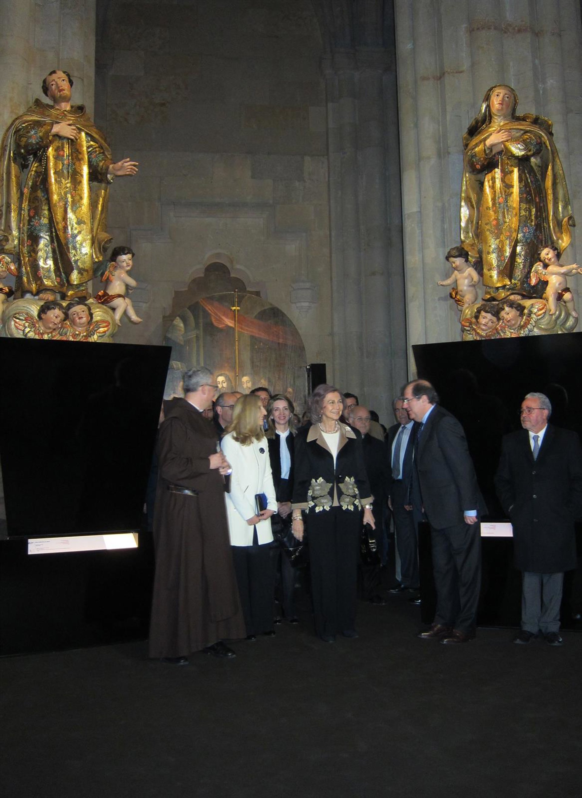 Cientos de ciudadanos se concentraban a las puertas de la Basílica de Santa Teresa en Alba de Tormes para ver entrar a la Reina, que ha visitado la muestra junto al presidente de la Junta de Castilla y León, Juan Vicente Herrera; la alcaldesa del municipio, Concepción Miguélez; la presidenta de las Cortes, Josefa García Cirac; el presidente de la Diputación Provincial, Javier Iglesias, y el alcalde de Salamanca, Alfonso Fernández Mañueco.