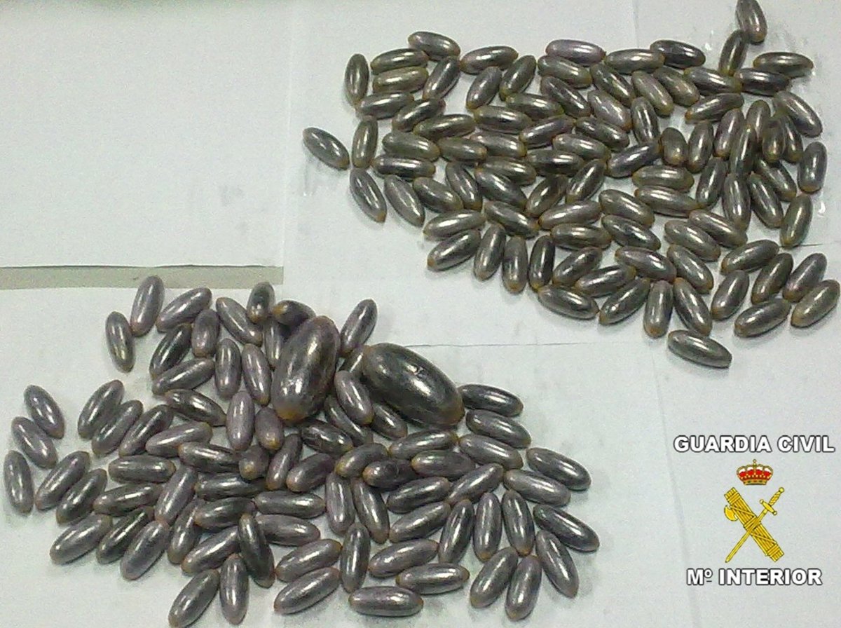Posteriormente a la detención, las tres personas arrojaron de sus organismos tres kilos y 200 gramos de hachís (640 bellotas), de las que se obtendrían unas 12.800 dosis de esa droga.