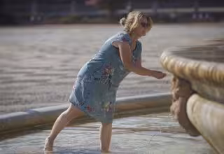 Una mujer se refresca en la fuente de la Plaza de España de Sevilla - María José López - Europa Press