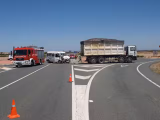 Cinco personas han resultado heridas este mediodía, cuatro de ellas de gravedad, al colisionar la furgoneta en la que viajaban contra un camión que transportaba residuos industriales. Se trata de tres varones, una mujer y un menor de 4 años, todos ellos vecinos de Soria.