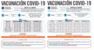 La vacunación arrancará el día 16 de junio a las 10 horas y hasta las 11 será el turno de los nacidos entre enero y marzo de 1971; de 11 a 12 horas, de abril a junio de 1971; de 12 a 13 horas, de julio a septiembre de 1971; de 13 a 14 horas, de octubre a diciembre; de 15 a 15.45 horas los nacidos entre enero y marzo de 1972; de 15.45 a 16.30 horas, de abril a junio de 1972; de 16.30 a 17.15 de julio a septiembre y de 17.15 a 18 horas, de octubre a diciembre de 1972.