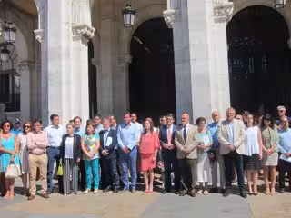 Frente al Consistorio vallisoletano, todos los miembros de la Corporación municipal han guardado cinco minutos de silencio que fueron rotos por un cerrado aplauso, tiempo en el que los miembros del ayuntamiento estuvieron acompañados por la delegada del Gobierno en Castilla y León, María José Salgueiro, la presidenta de las Cortes, Silvia Clemente, el presidente de la Diputación de Valladolid, Jesús Julio Carnero, y el presidente del Partido Popular de Castilla y León, Alfonso Mañueco.