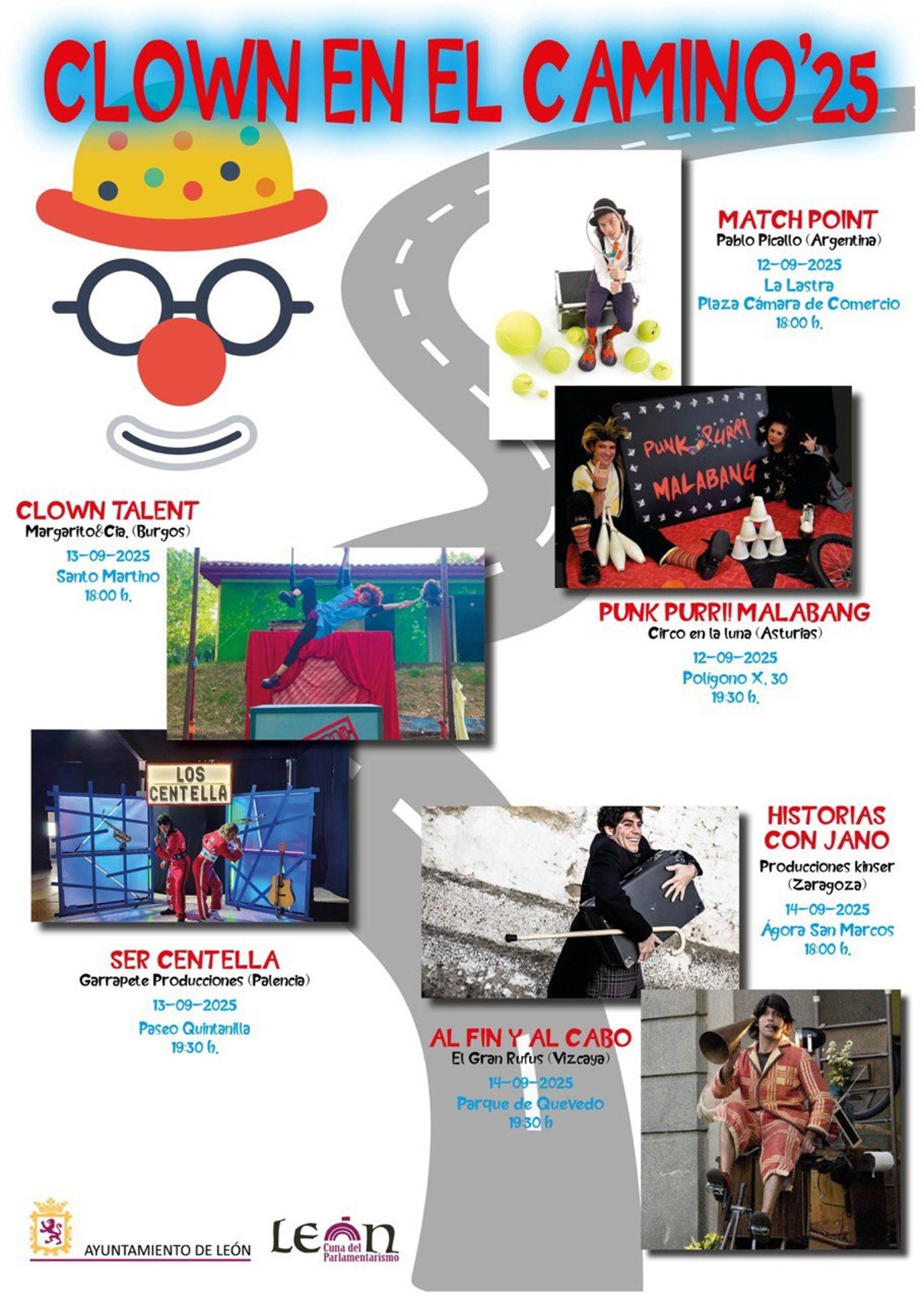 Cartel del ciclo 'Clown en el camino', que tendrá lugar en diferentes barrios de León capital este fin de semana. - AYUNTAMIENTO DE LEÓN