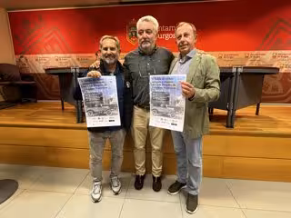 De izquierda a derecha: Eduardo González, de la AECC; el concejal Carlos Niño; y el representante del Club Burgalés de Vehículos Históricos, Chema del Río. - EUROPA PRESS