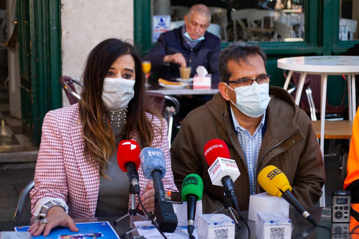 El delegado territorial de la Junta, Augusto Cobos, junto a la presidenta de la Asociación de Hosteleros, María José Hernández. - EUROPA PRESS