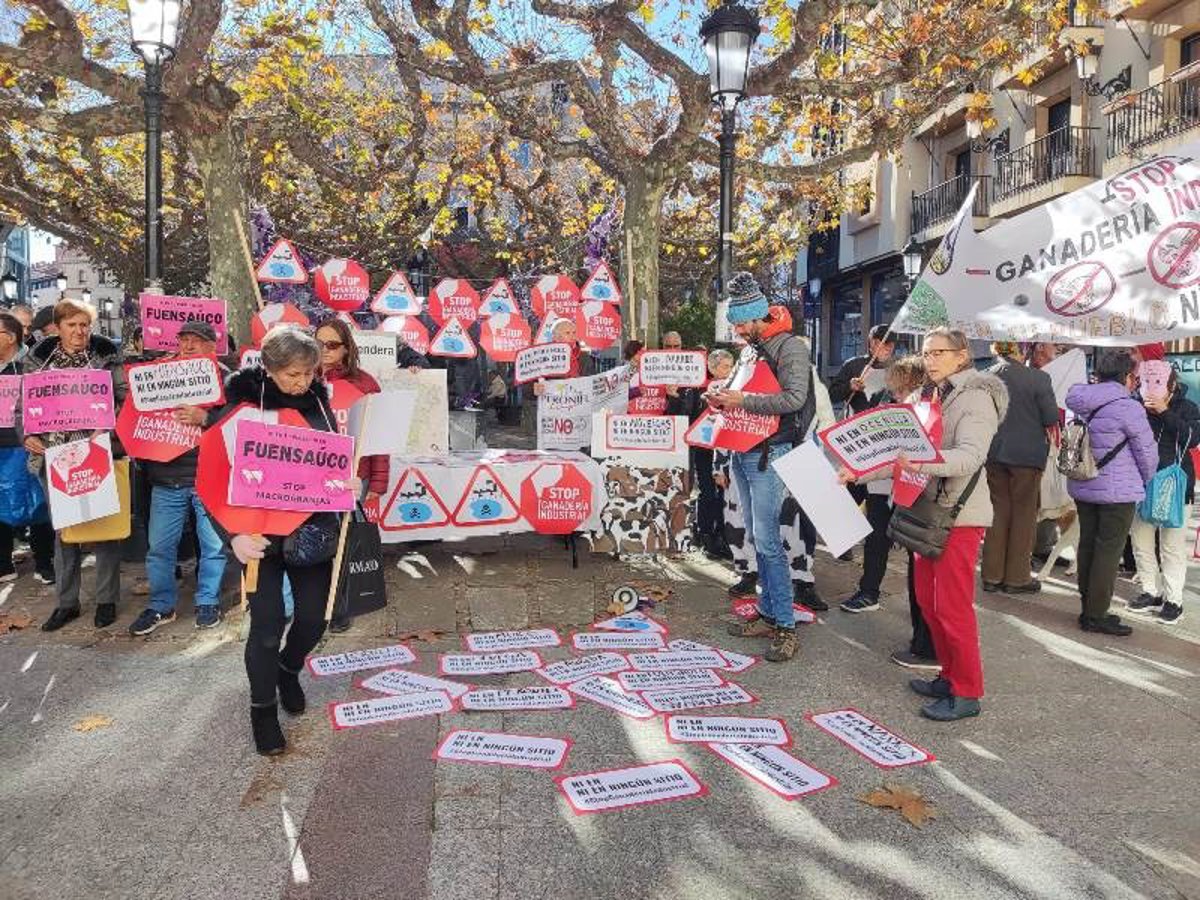 En el caso de la provincia de Soria, diferentes colectivos locales de municipios que "ya sufren una macrogranja o se proyecta construir o ampliar alguna", se han acercado hasta los terrenos de las mismas para llevar a cabo concentraciones de rechazo, con carteles como los que se han mostrado este jueves en la plaza de las Mujeres de Soria.