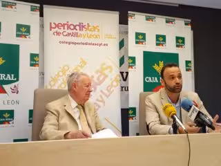 Al acto han acudido el decano del Colegio Profesional de Periodistas de Castilla y León, Pedro Lechuga, y el presidente de la Unión Regional de Cajas Rurales de Castilla y León, Pedro García Romera.