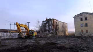 La licencia para este proyecto de derribo fue concedida el 7 de noviembre de 2014 a la empresa Eteco Obras SLU, que decidió comenzar durante la noche del lunes con el derrumbamiento de estas viviendas de Santa Elvira, que continúa este martes hasta su total demolición.
