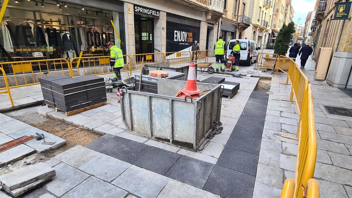 El Ayuntamiento de Salamanca ha iniciado los trabajos de sustitución de las losas de pizarra deslizantes que existen en calles del casco histórico de ciudad, de manera que se evite la posibilidad de caídas cuando llueve y se humedece el pavimento, al mismo tiempo que se mejora la accesibilidad.