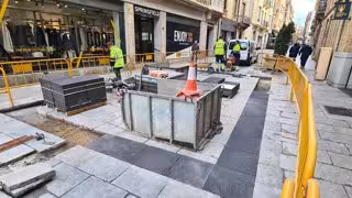 En la calle Azafranal, entre las plazas de Santa Eulalia y Liceo, se sustituyen por losas de hormigón antideslizante y además drenante, asentadas sobre lecho de apoyo formado por capa de gravilla silícea con recebado de juntas mediante arena.
