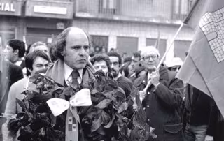 Imagen de archivo de Luis López Álvarez en una celebración de Villalar. Unos metros detrás se puede ver al fallecido alcalde socialista de Valladolid Tomás Rodríguez Bolaños. - COMISIÓN CIUDADANA DEL V CENTENARIO DE LOS COMUNER