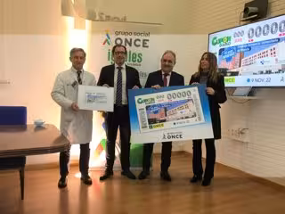 El delegado territorial de la Junta en Palencia, José Antonio Rubio, y el delegado territorial de la ONCE en Castilla y León, Ismael Pérez, han presentado este cupón este jueves en un acto que ha tenido lugar en la sede del hospital palentino, y en el que han estado acompañados por el gerente del Complejo Asistencial Universitario de Palencia, José Jolín, y la directora de ONCE Palencia, Paula Calvete.