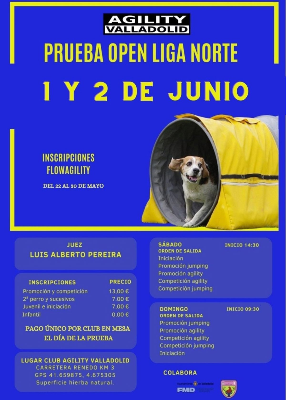 El Complejo Deportivo Ciudad de Valladolid, en la carretera de Renedo, acogerá los días 1 y 2 de dos competiciones de Agility, el Open, abierto a cualquier club nacional y la prueba puntuable para la Liga Norte en la que el club vallisoletano formará parte y en donde suelen concitarse 17 entidades y cerca de un centenar de binomios (perro + deportista guía).